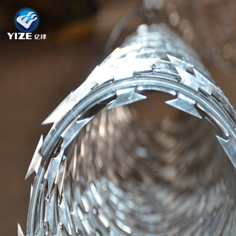 रेजर टेप जस्ती या स्टेनलेस स्टील खत्म में Concertina रेजर कांटेदार तार लोहे के तार पार उस्तरा संरक्षण 0.3mm-0.6mm